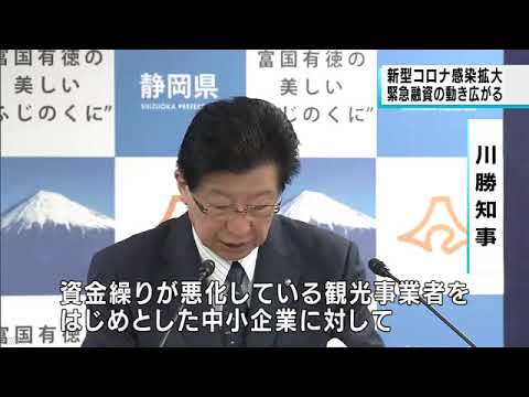 川勝知事の話「資金繰りが悪化している中小企業に対して緊急支援を行うことで、県内経済への影響を最小限にとどめたい」。