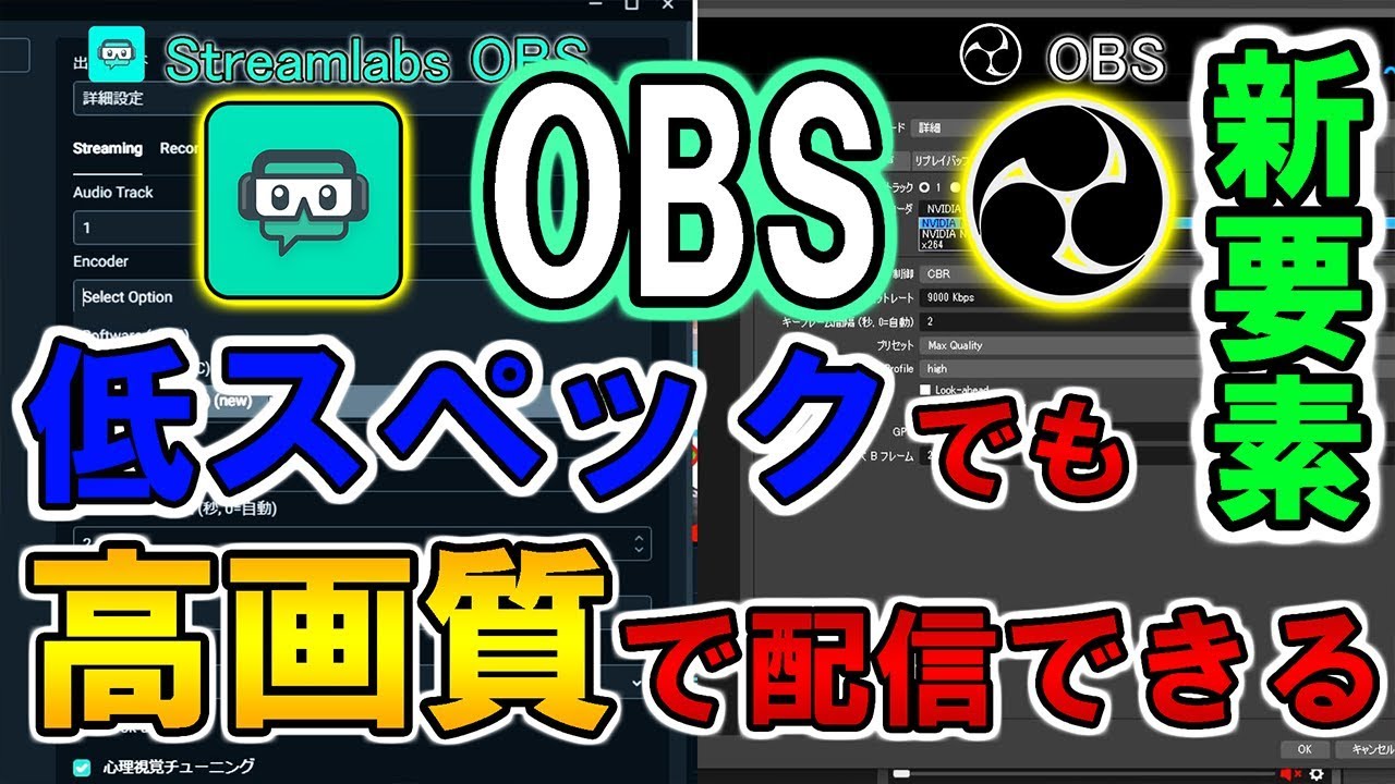 今回紹介した方法は今までCPUで配信を処理していたものをGPUに割り当てることでCPUの負担を減らし高画質で配信できるようにしたものです。配信の際の重い原因はCPUの処理が追い付かないためです。高画質の設定にするとCPUに負担が行くためスペックの低いものだと低画質に落とさなければなりませんでした。