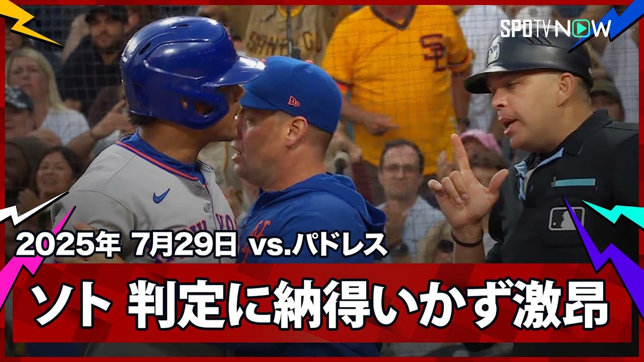 • 【メッツ・ソト ボール2球がストライク判定で激昂、止めに入ったメンドーサ監督は退場に】メッツvsパドレス MLB2025シーズン 7.29