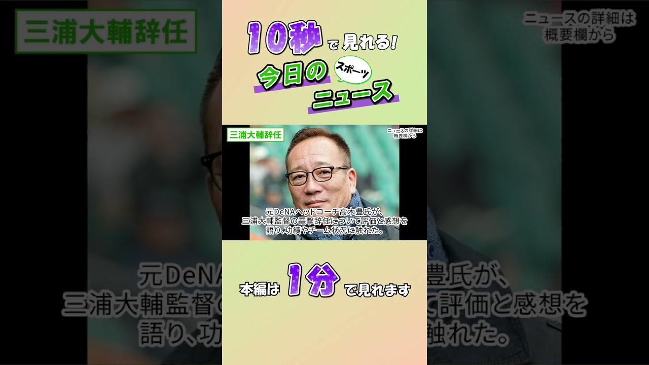 #ニュース #三浦大輔 #高木豊