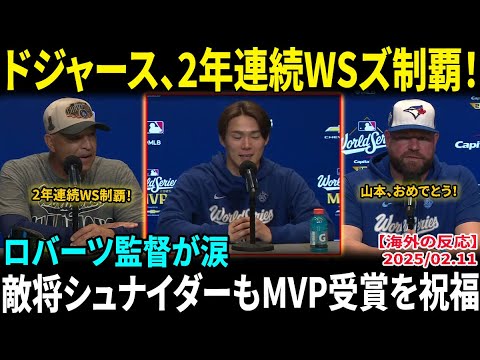 【山本由伸】ドジャースと共に2年連続ワールドシリーズ制覇!ロバーツ監督が涙「彼は本物の侍だ」敵将シュナイダーもMVP受賞を祝福【海外の反応/MLB/野球】