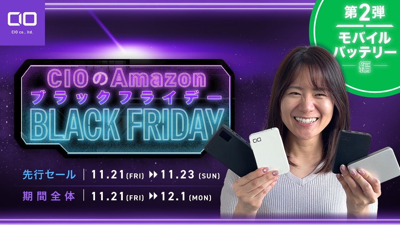 CIOでも、ブラックフライデー対象商品が数多くありますが、その中でも、皆様に注目いただきたい製品を少しずつ発表してまいります。iPhoneやAppleWatch、Androidスマホやタブレットはもちろん、ノートPCなどにもピッタリの充電器・モバイルバッテリーがきっと見つかります!
