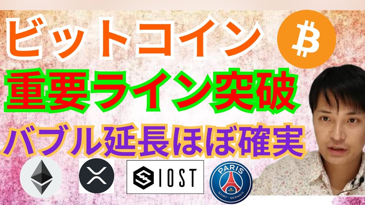 ビットコイン最重要ライン突破‼️バブル延長ほぼ確実【仮想通貨 BTC ETH XRP IOST PSG チャート分析】