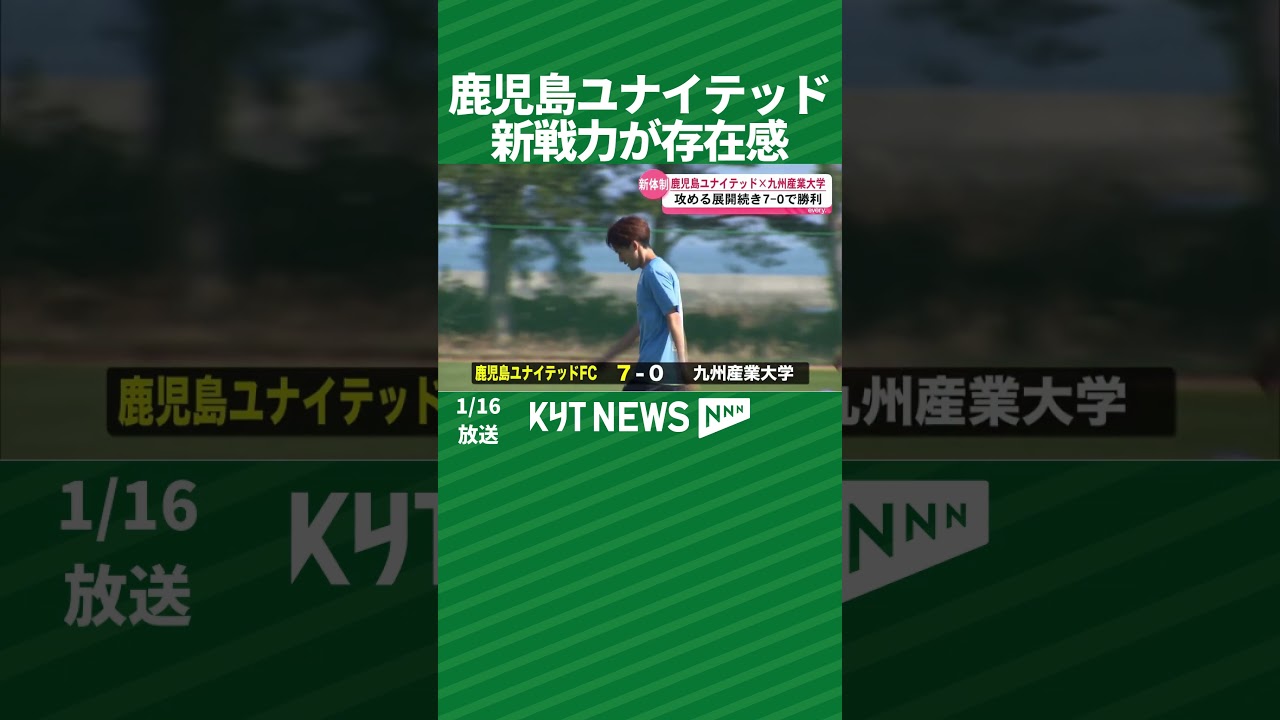 J3鹿児島ユナイテッドFCが九州産業大学とトレーニングマッチを行い、新加入選手が躍動。福田の先制点を皮切りに攻撃が続き7対0で勝利した。村主監督は意図した攻撃の精度向上を課題に挙げ、福田選手は「昨季の悔しさを力にアピールしたい」と語った。